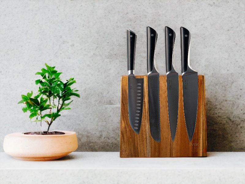 Minimalist style meets maximum function. Strong internal magnets hold your knives firmly...