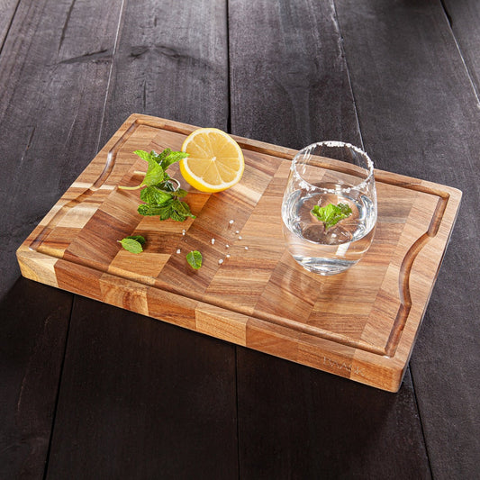 Acacia Wood Chopping Board, Butcher Block With Juice Groove On One Side and Built-In Handles